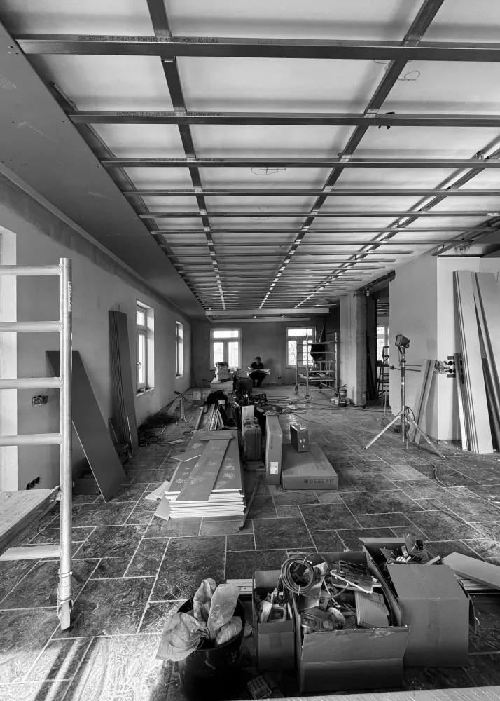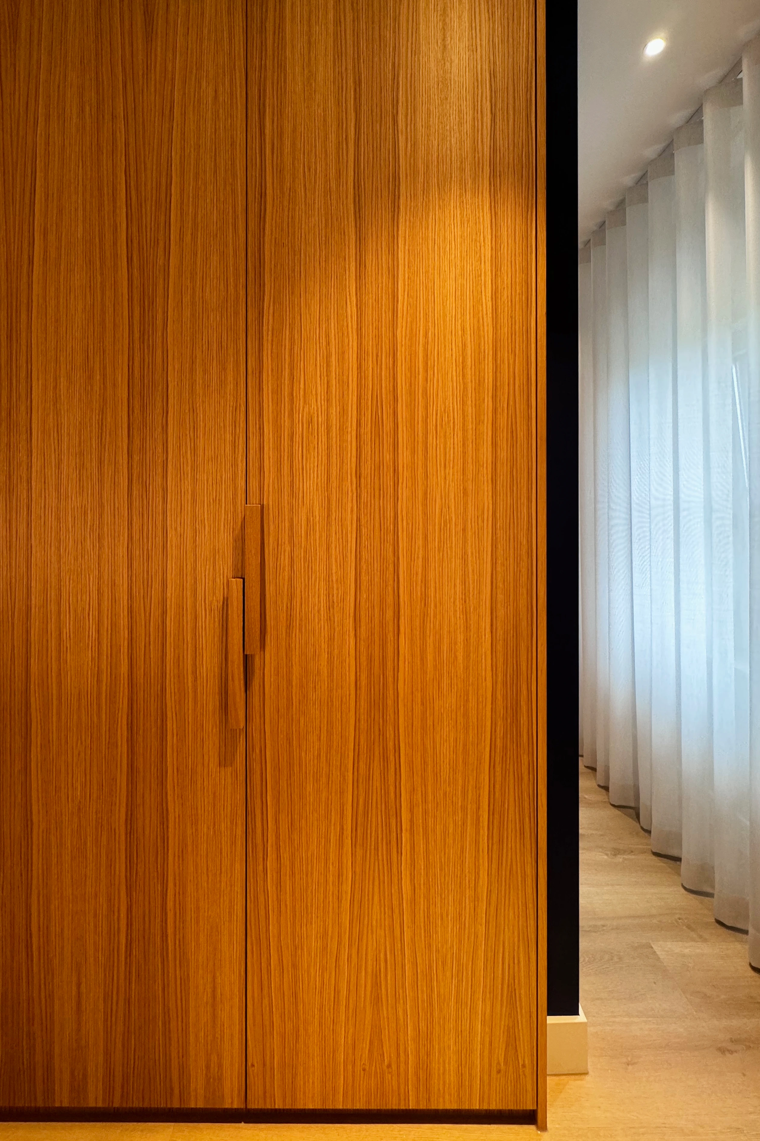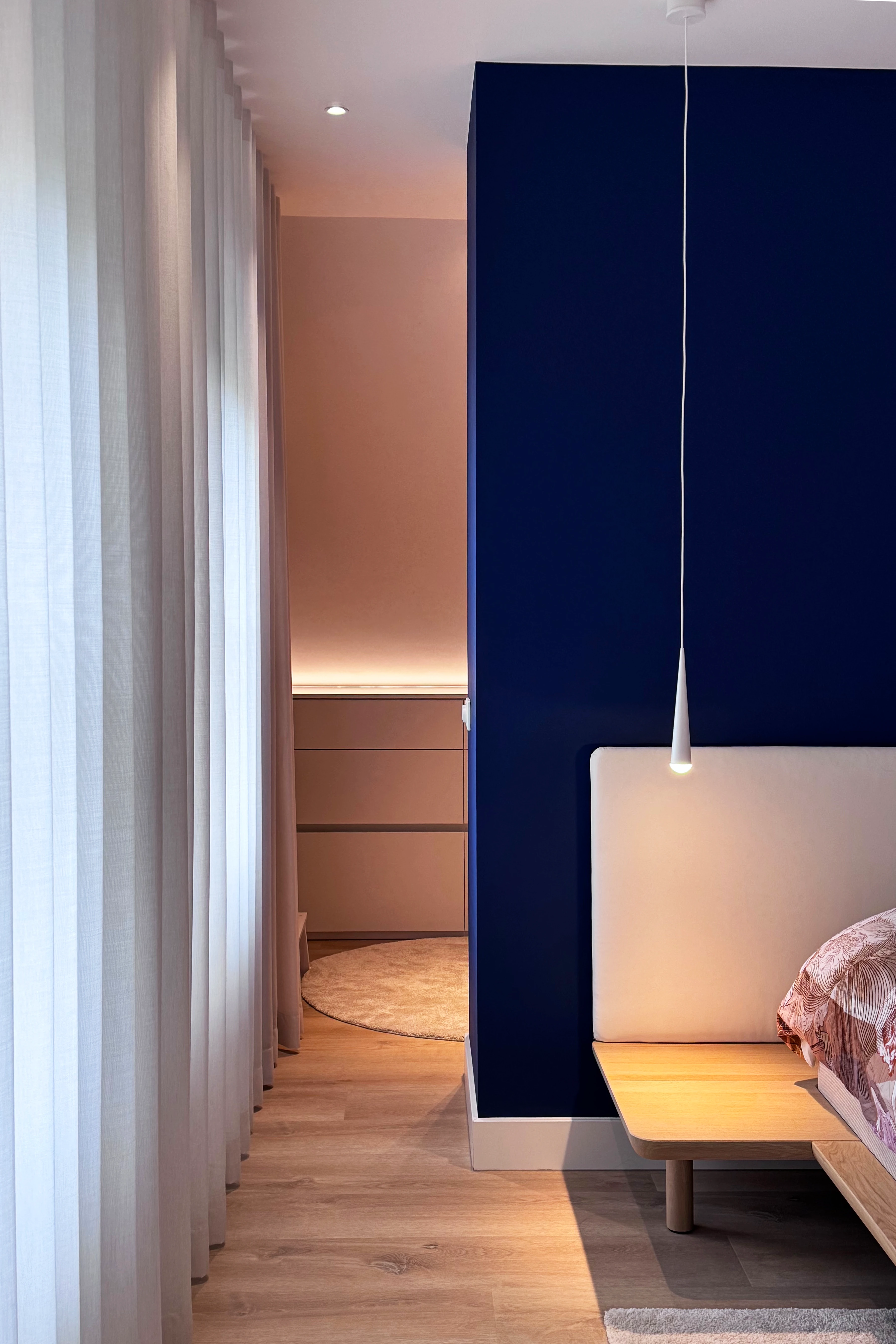 Welkom in dit royale landhuis in het hart van de Betuwe, dat gerenoveerd en passend is gemaakt naar de woonwensen van onze opdrachtgever, met een luxe interieur en een sfeervolle, Thaise touch. Door de ruimtes op de woonlaag met elkaar te verbinden en door maximale openingen te creëren, zijn er nieuwe zichtlijnen ontstaan waardoor je je overal prettig en thuis voelt. De entreehal is tot centrum van het huis gemaakt. Deze zorgt nu voor een verticale verbinding tussen de slaapverdieping op de eerste verdieping en de kelder waar de kinderen hun domein hebben. Een specifiek karakter wat we hebben toegevoegd aan dit mooie landhuis zijn de verlaagde en verhoogde plafonds, gecombineerd met de indirecte lichtlijnen, wat een architectonische uitstraling geeft aan de betreffende ruimtes. De materialisatie van de bronzen stalen deuren, het behang en de kleurstelling van het interieur geven de luxe, sfeervolle ambiance een Thais karakter.