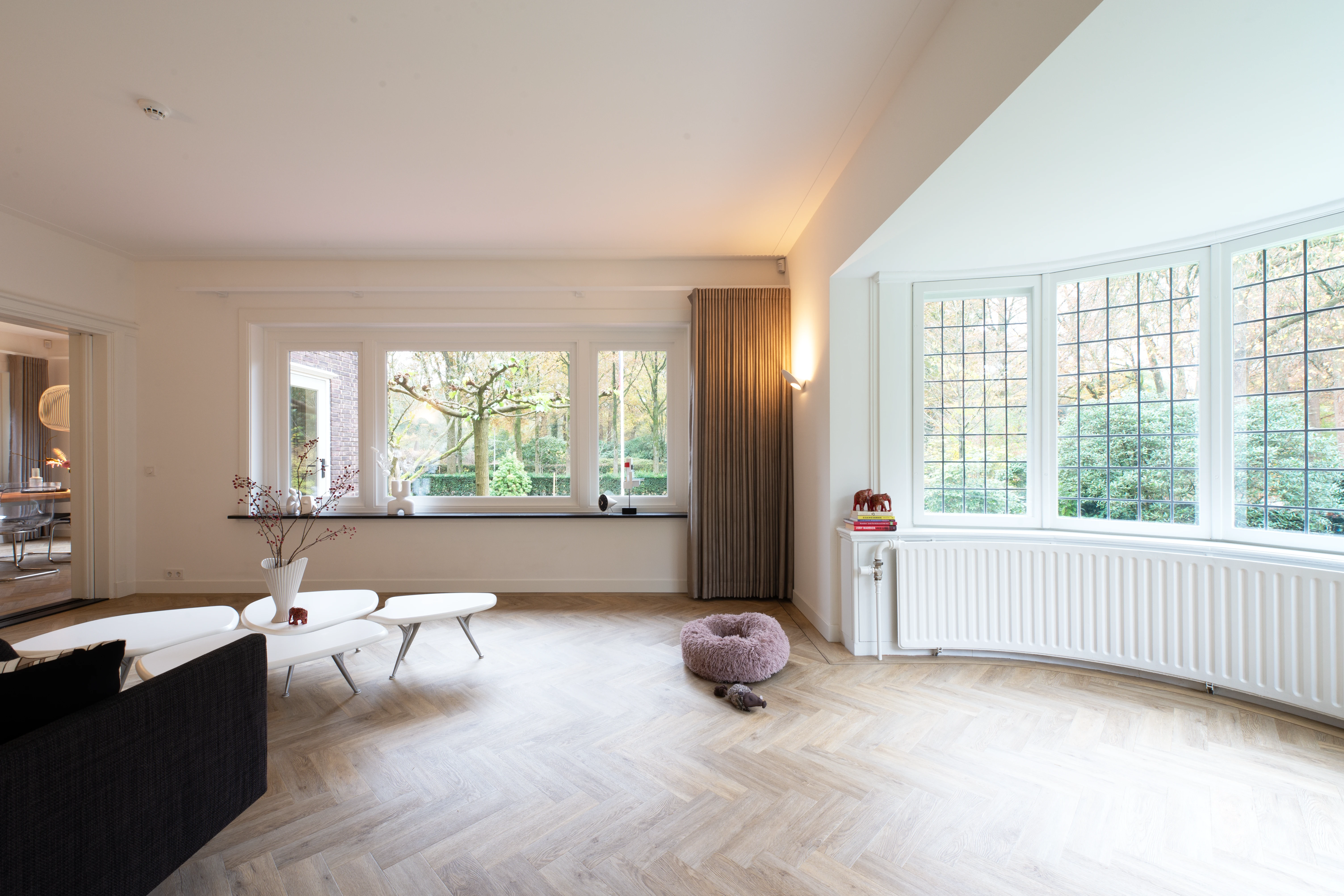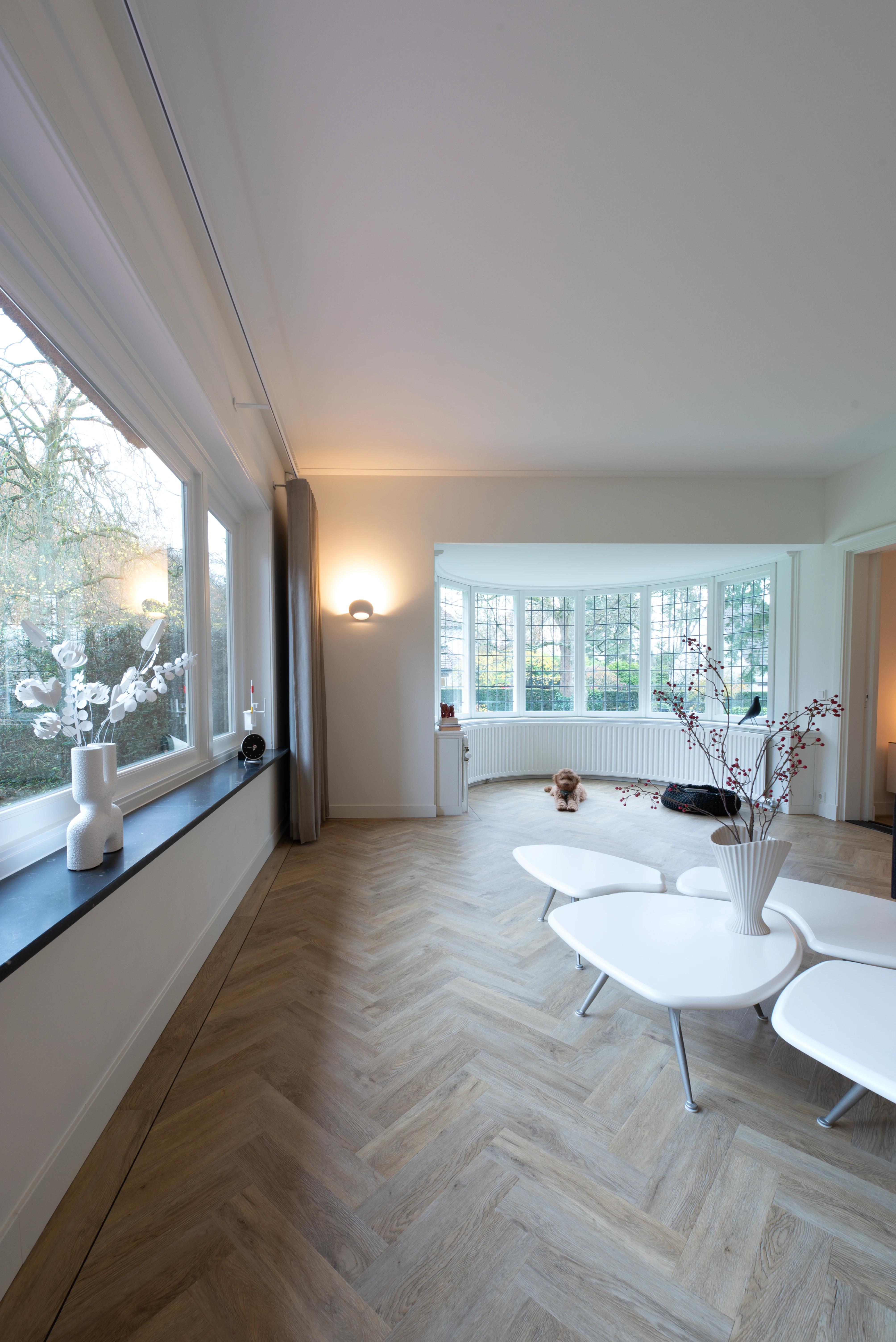 De opdrachtgevers wilden een interieur dat rustig, licht en vooral sneeuwwit is, met hier en daar een verfijnd zwart detail. Dit om de charme van het huis uit 1922 te benadrukken en voelbaar te maken in de moderne tijd. Het renoveren van deze villa was een uitdagend project, maar samen met de opdrachtgevers is het gelukt om de oorspronkelijke karakteristieke details te behouden en buiten onderdeel van binnen te maken.