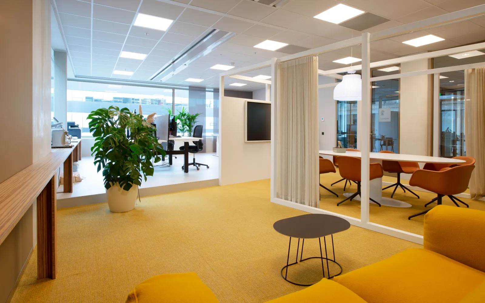 Duurzaam en huiselijk kantoorinterieur voor Radicle Crops Voor het internationale kantoor van Radicle Crops op de WUR-campus in Wageningen ontwierp AMstudio een inbouwinterieur dat zowel functioneel als persoonlijk herkenbaar is. De ruimte is afgestemd op de wensen van de gebruikers en sluit aan bij de huidige tijd, waarin hybride werken en videovergaderen centraal staan.