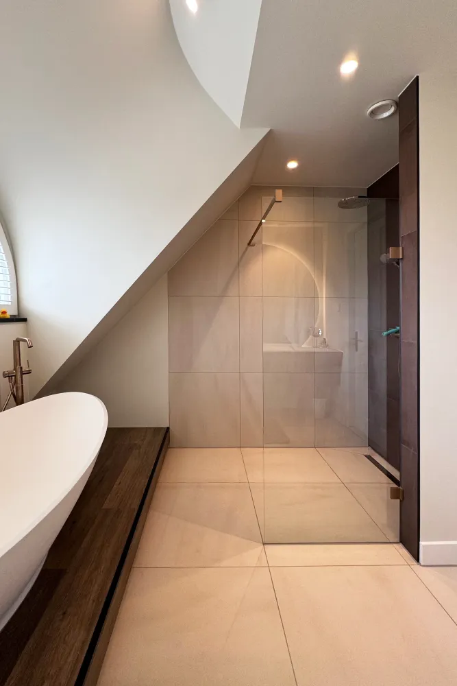 Welkom in dit royale landhuis in het hart van de Betuwe, dat gerenoveerd en passend is gemaakt naar de woonwensen van onze opdrachtgever, met een luxe interieur en een sfeervolle, Thaise touch. Door de ruimtes op de woonlaag met elkaar te verbinden en door maximale openingen te creëren, zijn er nieuwe zichtlijnen ontstaan waardoor je je overal prettig en thuis voelt. De entreehal is tot centrum van het huis gemaakt. Deze zorgt nu voor een verticale verbinding tussen de slaapverdieping op de eerste verdieping en de kelder waar de kinderen hun domein hebben. Een specifiek karakter wat we hebben toegevoegd aan dit mooie landhuis zijn de verlaagde en verhoogde plafonds, gecombineerd met de indirecte lichtlijnen, wat een architectonische uitstraling geeft aan de betreffende ruimtes. De materialisatie van de bronzen stalen deuren, het behang en de kleurstelling van het interieur geven de luxe, sfeervolle ambiance een Thais karakter.