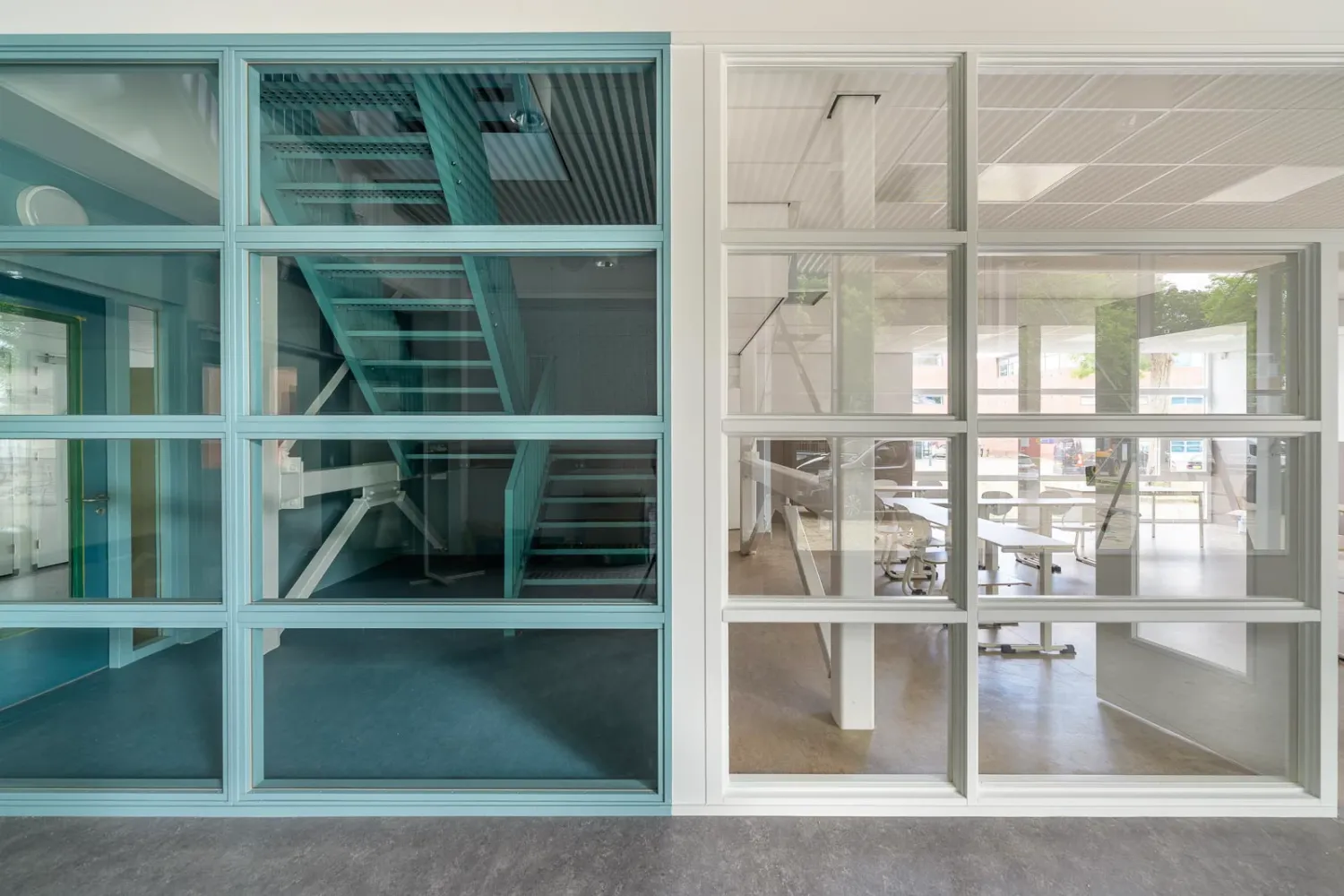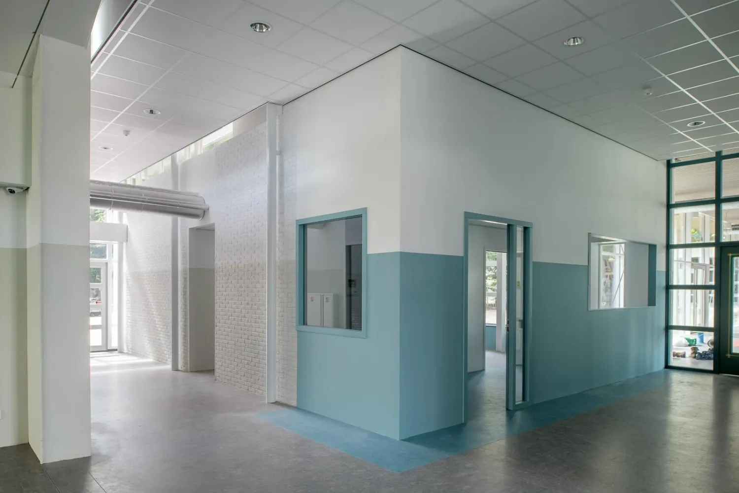 In samenwerking met Studio Huijgens transformeerde AMstudio twee voormalige basisscholen tot één inspirerende praktijkschool. Door oud en nieuw op een creatieve en kleurrijke manier met elkaar te verbinden, ontstond een samenhangend geheel waarin de kwaliteiten van de bestaande gebouwen het nieuwe ontwerp verrijken.