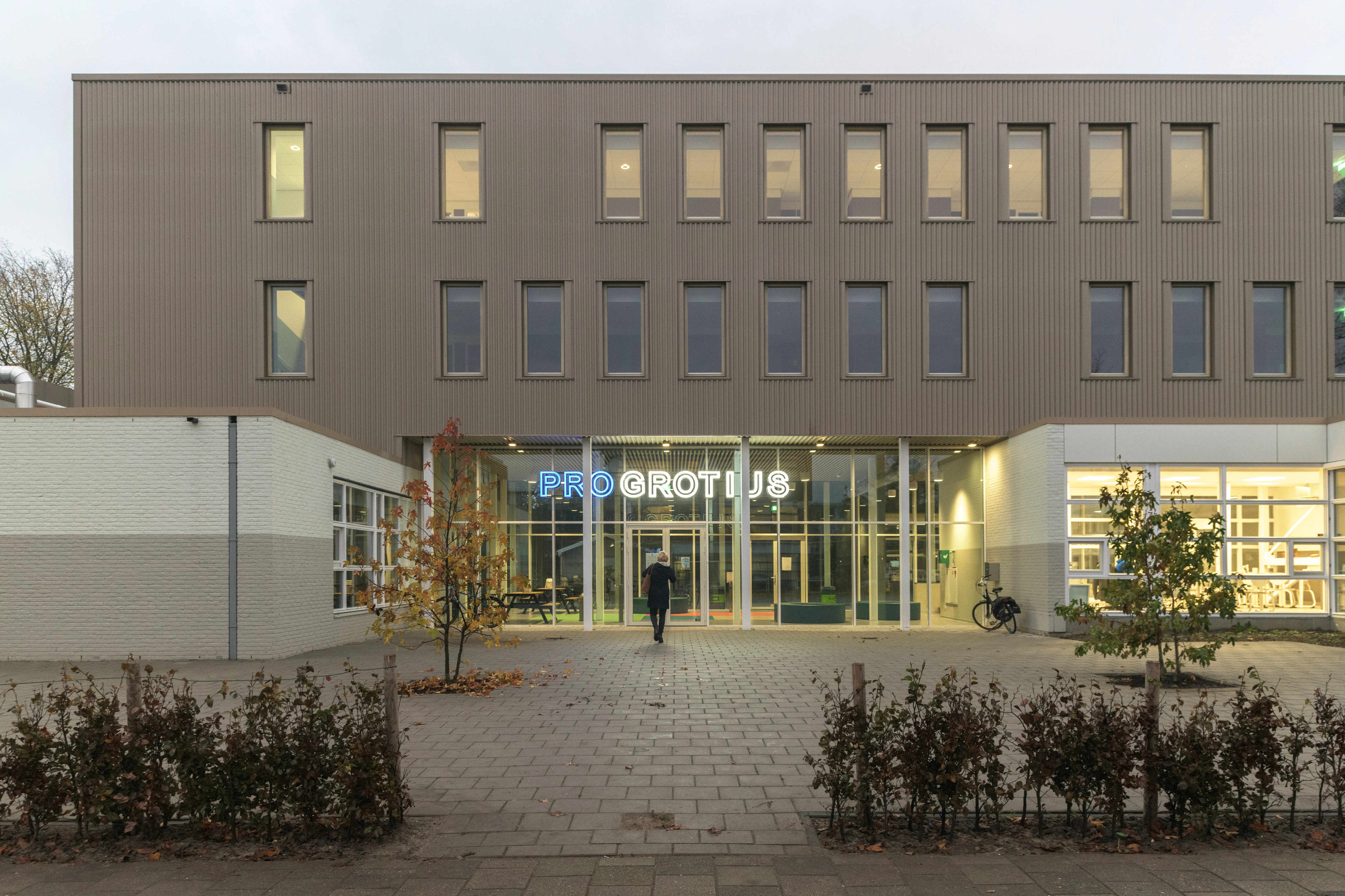 Het interieur is ontworpen met oog voor sfeer, comfort en menselijke schaal. Grote karpetten op de vloer zorgen voor een huiselijke uitstraling, terwijl de openheid en kleurgebruik bijdragen aan een warme leeromgeving. Binnen het beschikbare budget is een plek gecreëerd waar leerlingen zich welkom en veilig voelen—een schoolgebouw dat aanvoelt als een tweede thuis.