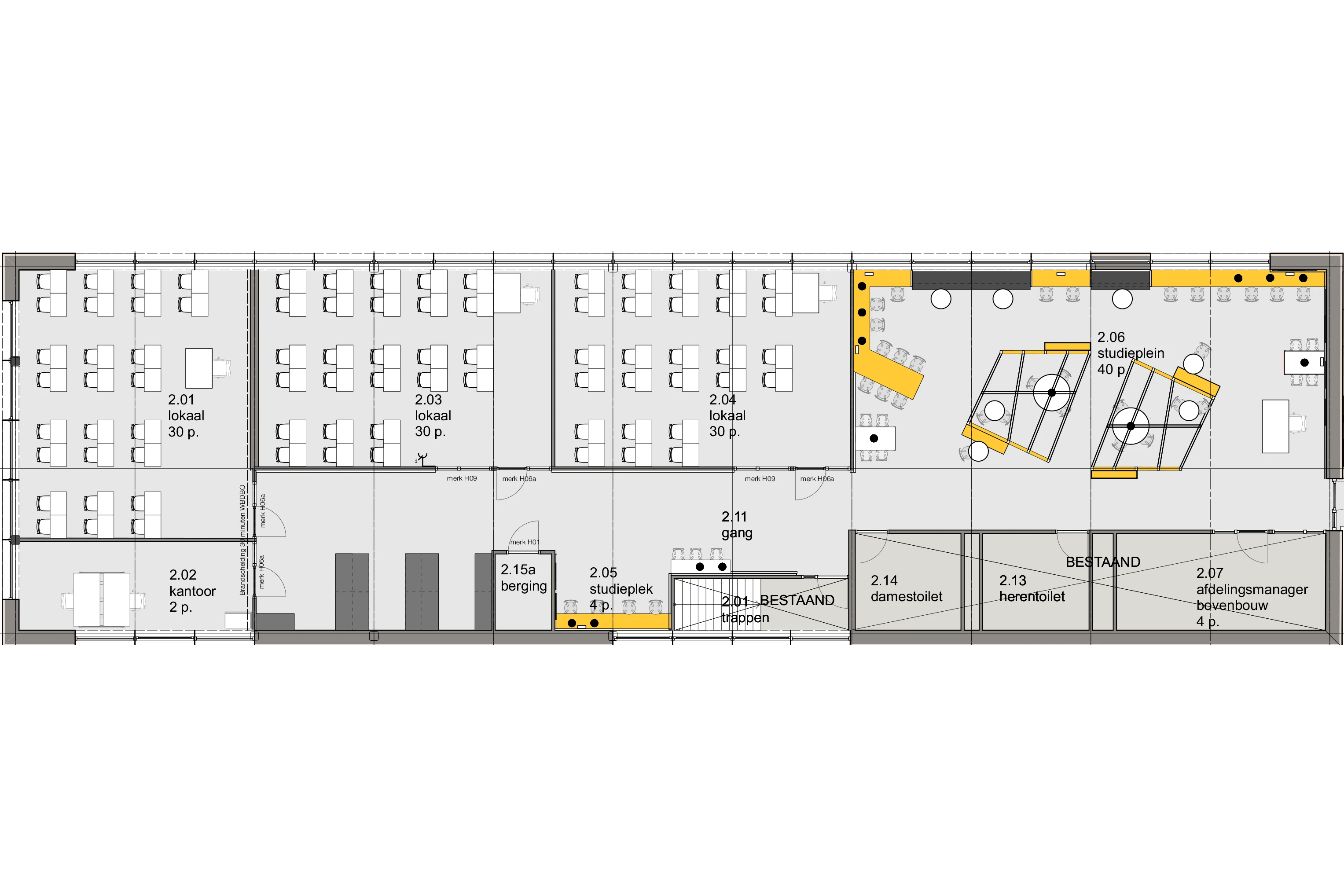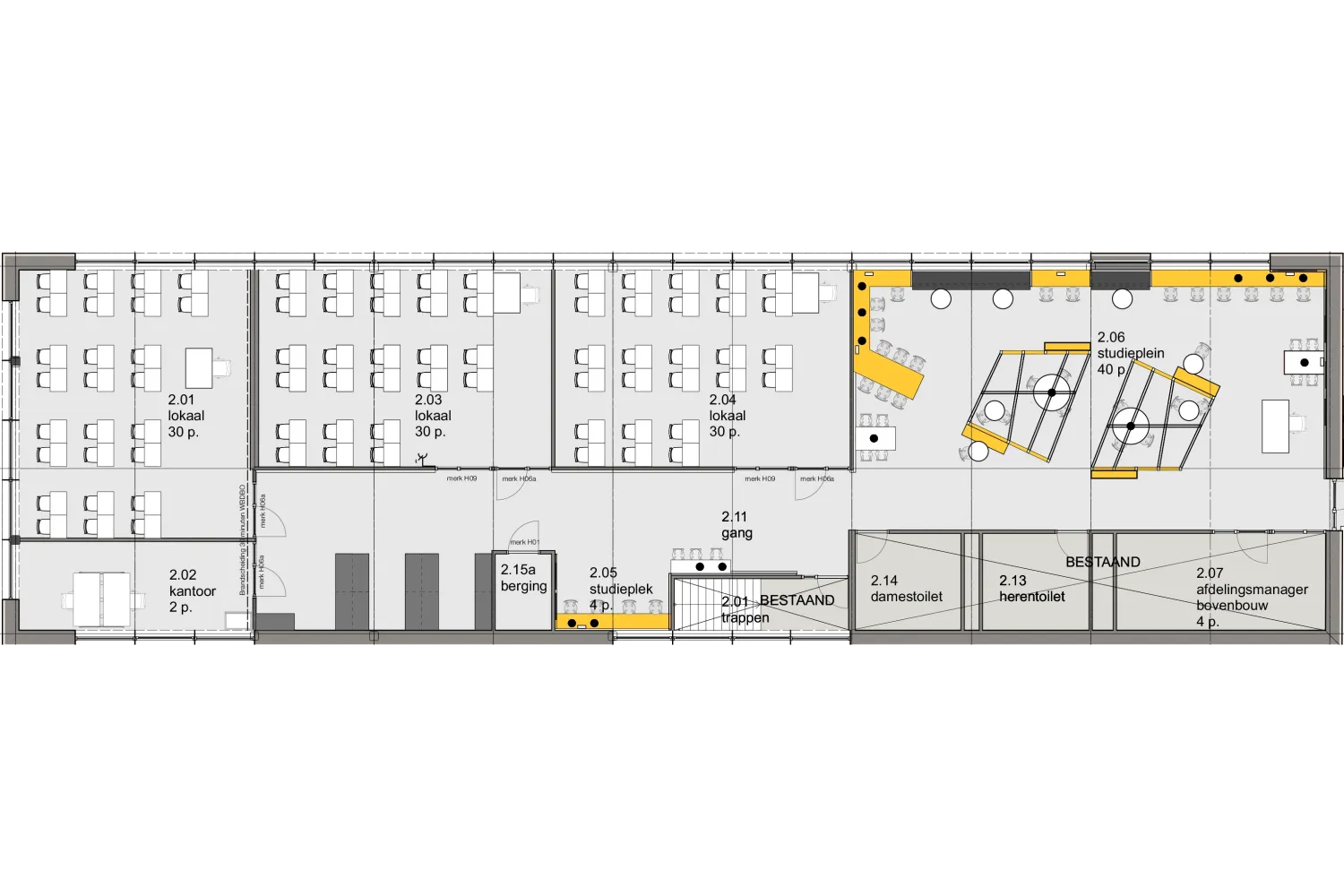 We transformeren de verdieping met ruimere klaslokalen en een open studieplein, perfect voor zelfstandig werken—alleen of in groepen.