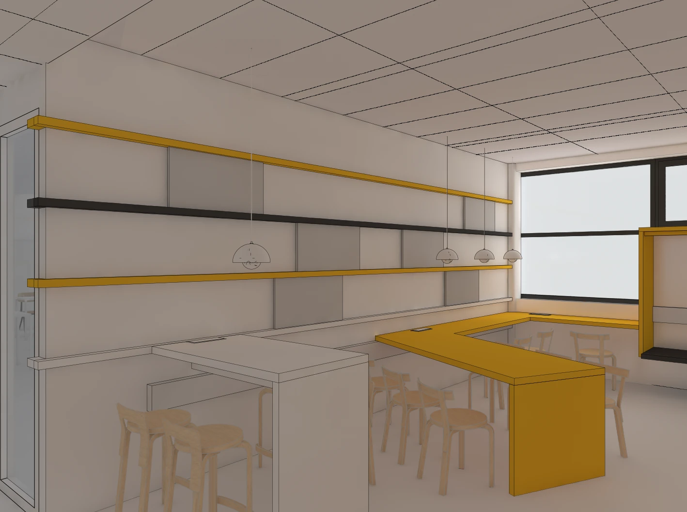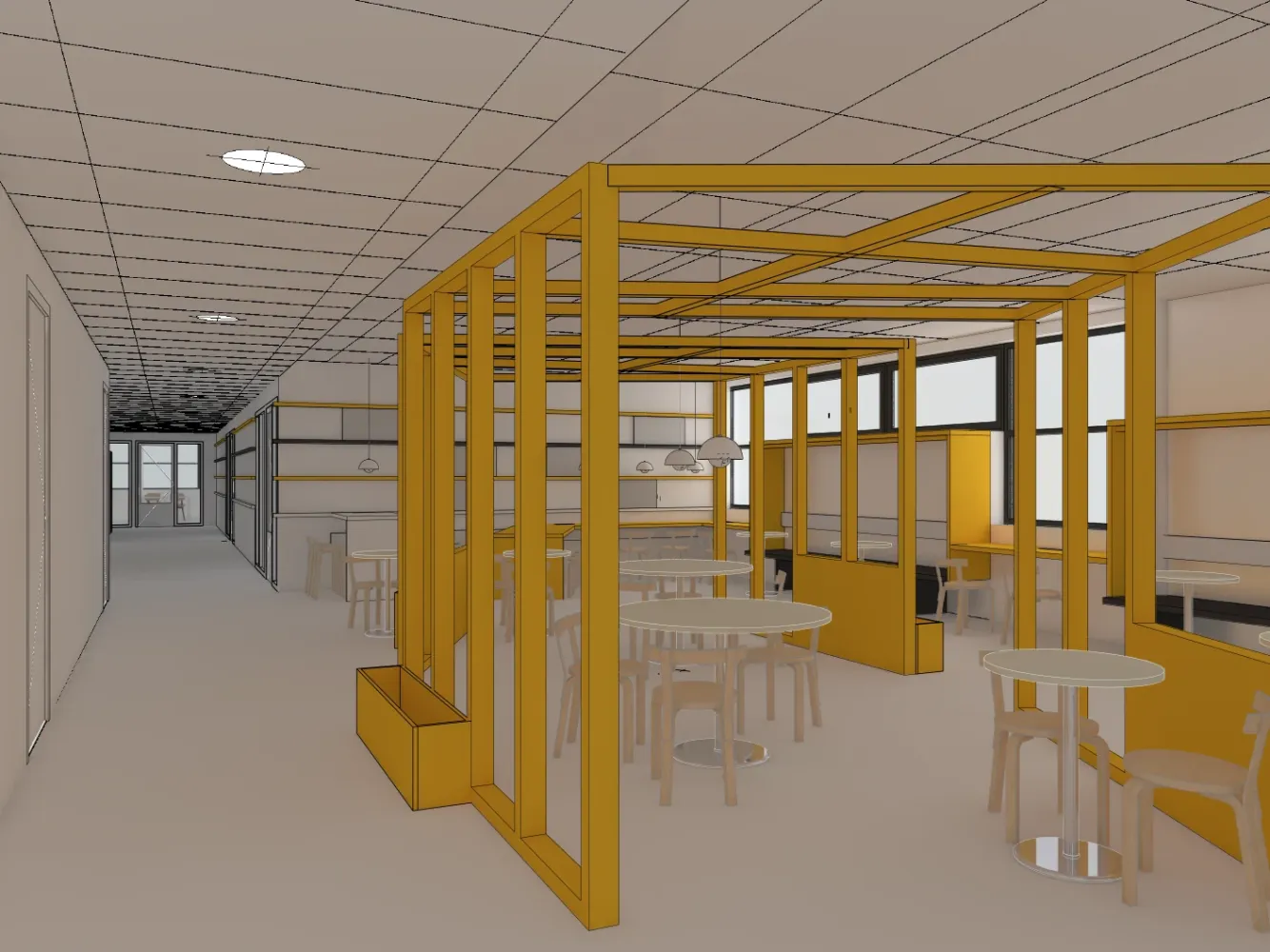 Hier zie je een selectie van beelden die een nieuwe leer- of werkomgeving visualiseren, inclusief ruimtelijke indeling, materiaalgebruik en sfeer.